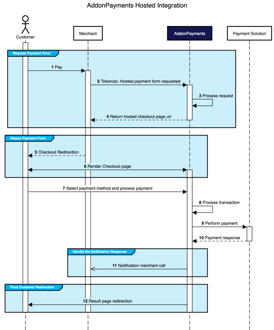 A continuación, tienes un diagrama con todo el proceso que sigue la integración Hosted.