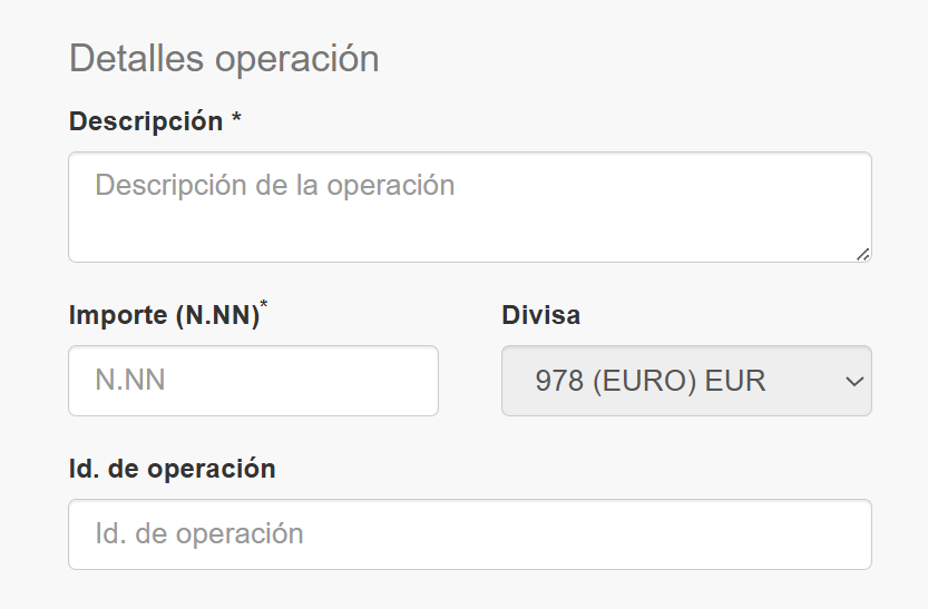 MO/TO desde Canales ¿Qué es MO/TO?MO/TO (Mail Order/Telephone Order) es una operativa que permite introducir los datos de la tarjeta del cliente de forma manual.El cliente indica los datos de su tarjeta por teléfono o por correo electrónico, y los datos se introducen mediante un agente o sistema automatizado. Este tipo de pago es utilizado en callcenters tipo teletienda, por ejemplo. Ni el cliente ni su tarjeta se encuentra presente en el momento del cobro, por lo que las operaciones son calificadas como «no seguras» y NO se solicita autenticaciónEsta operativa se puede realizar desde Canales, como verás en este documento. También se puede hacer desde las integraciones a medida:Integración por Redirección.Integración REST.Tienes que solicitar a Soporte u oficina su activación. Una vez activada, aparecerá en el menú lateral de Canales como «Operación Manual». Tienes que solicitar la activación de MO/TO a Soporte u Oficina. Cómo usar MO/TO desde CanalesSigue estos pasos para realizar una operación manual o MO/TO desde Canales:1. Entra en el Canales del entorno donde quieras usar MO/TO / Operación Manual: EntornoURL Entorno de Pruebas o Sandboxhttps://sis-t.redsys.es:25443/admincanales-web/index.jsp#/loginCaixa Entorno de Producción o Realhttps://canales.redsys.es/admincanales-web/index.jsp#/loginCaixa 2. Dentro de Canales, ve a: Menú de navegación izquierdo > «Administración» (icono de maletín).3. Clica «Operación Manual». 4. Puedes hacer una autorización (Pago manual), una preautorización o una devolución. Clica en la pestaña que necesites. 5. Si tu usuario tiene más de un comercio o terminal, tienes que seleccionar el nº de comercio y el terminal con el que quieres hacer la operación MO/TO. 6. Rellena los detalles de la tarjeta del cliente que te indica por teléfono. En la imagen inferior tienes los detalles de cada campo: Nº de tarjeta: Requerido. Nº de tarjeta del cliente. En los pagos MO/TO se indica por teléfono. Caducidad: Requerido. Caducidad de la tarjeta del cliente. Se indica el MES y el AÑO. Código de seguridad: Código de seguridad CVV2 de la tarjeta del cliente. 7. Rellena los detalles de la operación. En la imagen inferior tienes los detalles de cada campo. Descripción: Requerido. Descripción de la operación, sirve para identificarla más fácilmente más adelante. Importe (N.NN): Requerido. Importe de la operación, incluido los decimales. Id. de operación: Identificador de la operación. Si se deja en blanco se genera uno aleatorio. No se permiten identificadores repetidos. Divisa: Divisa de la operación. Si tienes más de una moneda configurada, puedes elegirla. 8. Clica «Realizar Pago Manual».9. Si la operación se ha realizado correctamente, verás un cuadro de confirmación con los detalles de la operación y su número de pedido. Devoluciones, capturas y anulaciones MO/TOTras hacer el pago MO/TO o manual, puedes consultar la operación mediante la Consulta de operaciones. Puedes identificarlas ya que el Tipo de pago es «Pago MOTO», también por el código de pedido. Devoluciones de pago MO/TO Confirmar o anular pago MO/TO