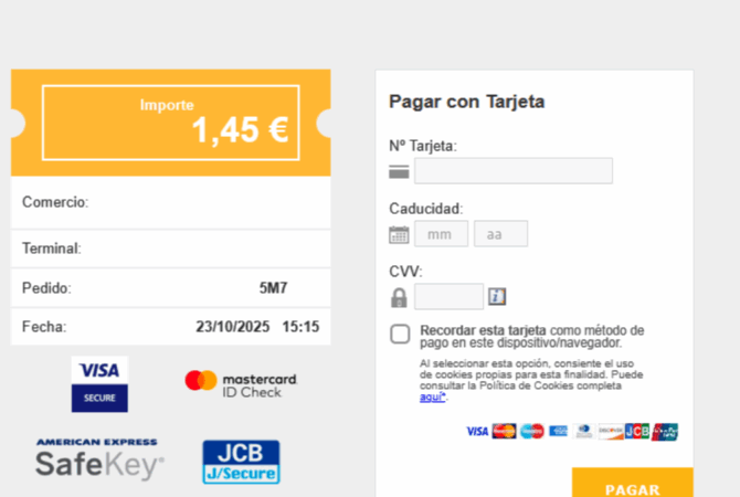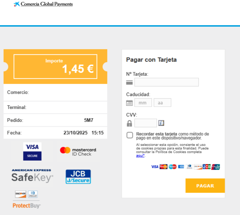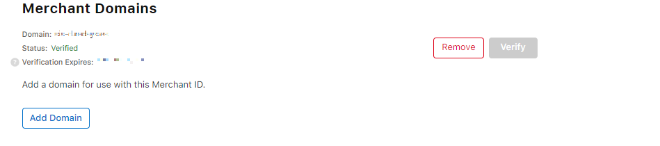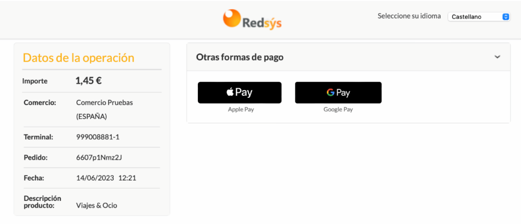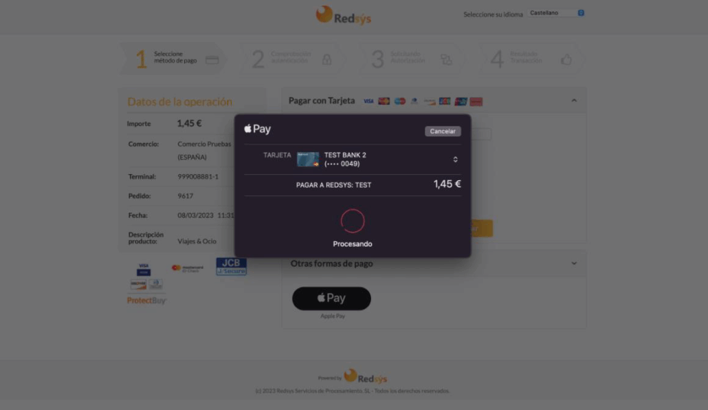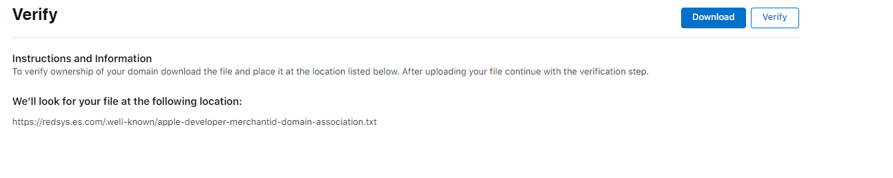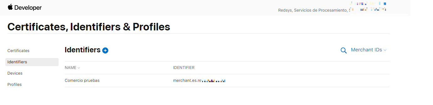 ApplePay IntroducciónApple Pay es un sistema de pago móvil disponible en dispositivos Apple, como: iPhone, iPad, Mac o Apple Watch. Permite a los usuarios almacenar sus tarjetas y pagar sin necesidad de volver a introducir sus datos.Apple muestra la opción de Pagar con Apple Pay en las webs donde se ha integrado el sistema y siempre que se acceda con un dispositivo compatible, como el iPhone. Para usar Apple Pay, tanto el comercio como el cliente tiene que cumplir unas condiciones: Tu comercio tiene que tener activo el método de pago solicitándolo a Soporte e integrar Apple Pay en su integración, como veremos en esta guía. El cliente tiene que tener un dispositivo compatible con Apple Pay y haber vinculado su(s) tarjeta(s). Para usar Apple Pay, tienes que pedir su activación al equipo de Soporte. Indicando si la integración es por redirección o propia. Integraciones disponiblesApple Pay se puede integrar en:Integración por redirecciónIntegración RESTTienes más detalles en las secciones específicas Apple Pay sólo se puede integrar en el entorno de Producción de tu TPV Virtual. Integración por RedirecciónSi tienes una integración por redirección puedes integrar Apple Pay únicamente solicitando su activación a Soporte. Si usas Apple Pay en tu integración por redirección:No es necesario ningún cambio técnico en tu integración. Sólo tendrás que pedir su activación. Si el cliente entra desde un dispositivo compatible con Apple Pay (como iPhone), verá el botón de pago con Apple Pay. Si el dispositivo o navegador no es compatible con Apple Pay, NO verá el botón. Si lo prefieres, puedes limitar los métodos de pago a Apple Pay, como veremos a continuación. Si tu comercio tiene una personalización antigua NO se mostrará el botón de pago de Apple Pay aunque esté activo. Si tu comercio tiene una personalización antigua, no se mostrará el botón de pago de Apple Pay aunque esté activo. En este caso, se deberá eliminar la personalización y hacer una nueva que sea compatible.En la siguiente captura tienes un ejemplo de personalización antigua: Flujo de pago Apple Pay en redirecciónA continuación tienes el flujo de pago de Apple Pay en redirección junto a capturas que ilustran el proceso:Una vez has solicitado su activación, Apple Pay se mostrará en la pantalla de tu TPV Virtual donde se solicitan los datos de la tarjeta (siempre que el cliente esté usando un dispositivo compatible con Apple Pay). Al pulsar en pagar con Apple Pay, se iniciará Apple Pay y el cliente seleccionará la tarjeta con la que pagar. Para pagar, el cliente se identifica con PIN o Biometría.El pago será procesado automáticamente. Si da error, se cerrará la opción de Apple Pay y se dará la opción de introducir la tarjeta manualmente. Mostrar sólo Apple PaySi tienes activo Apple Pay en tu integración por redirección, puedes mostrar al cliente únicamente la solución de pago Apple Pay, ocultando la opción de introducir datos de tarjeta.¿Cómo mostrar sólo Apple Pay?Para mostrar sólo Apple Pay (y Google Pay si lo tienes activo), envía el campo DS_MERCHANT_PAYMETHODS con el valor xpay.Este campo se tiene que enviar en el JSON de Ds_MerchantParameters. Integración propiaSi quieres integrar Apple Pay en tu página web directamente tienes que seguir los pasos que te vamos a detallar en esta sección:Registrar tu comercio en Apple Pay.Integrar Apple Pay en tu plataforma.Integrar Apple Pay en tu TPV Virtual. El proceso se detalla en la guía propia de Apple Pay, aunque hemos detallado los pasos en las siguientes secciones.Además, tendrás que configurar el servidor de tu comercio según la guía de Apple Pay.Las operaciones se enviarán mediante conexión REST con el TPV Virtual. Registrar tu comercio en Apple PayEl registro con una cuenta de Apple Pay con las opciones de desarrollador (lo que se requiere para la integración) tiene un coste anual por parte de Apple. Más información en Apple.La creación de la cuenta es necesario para obtener un ID de comercio y una clave privada (que se usará para desencriptar los datos del medio de pago).A continuación, te mostramos como:Obtener el ID de Comercio.Obtener la clave privada.Crear el Certificate Signing Request (CSR).Registrar los Dominios en Apple Pay. 1. Obtener el ID de Comercio (Merchant ID)Vamos a crear un nuevo Identificador de Comercio (si ya lo has creado, lo tendrás en la sección correspondiente).Entra a la consola de Apple.Ve a «Certificates, Identifiers & Profiles».Pulsa «Merchant IDs», en la derecha.Pulsa el botón de añadir más. 5. Pulsa «Continue». 6. Indica una descripción en «Description» para identificar el ID y haz clic en «Continue». 7. Revisa los datos y pulsa «Register». 2. Obtener clave privada (Merchant Identity Certificate)Para generar una clave privada (Merchant Identity Certificate) en Apple Pay sigue estos pasos: 1. Generar una clave privada RSA2048. Posteriormente, realizar una solicitud de firma de certificado (CSR) con la clave RSA2048 generada utilizando la herramienta OpenSSL, utiliza el siguiente comando: openssl req -new -newkey rsa:2048 -nodes -keyout merchant_id.key -out merchant_id.csr -subj '/O=NombreComercio /C=ES' 2. Esta acción generará un fichero merchant_ir.csr, que deberás utilizar para generar el certificado final por parte de Apple.3. En la consola de Apple, haz clic en «Certificates, Identifiers & Profiles». Luego, haz clic en «Identifiers» y selecciona «Merchant IDs» en el menú desplegable de la derecha. Haz clic en el MerchantID que generaste en el apartado anterior.4. En la parte inferior de la página, haz clic en «Create certificate», bajo el título «Apple Pay Merchant Identitiy Certificate». 5. Carga el archivo merchant_id.csr generado en el paso 1 de este proceso y pulsa «Continue». 6. Haz clic en «Download» para descargar un archivo llamado merchant_id.cer. 7. Convierte el archivo descargado en un archivo *.pem. Utiliza el siguie